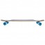 Raven Geo Blue 41" drop-through longboard complete. De Raven Geo is zeer geschikt voor beginnende en gevorderde longboarders, die op zoek zijn naar een voordelig stabiel, snel en soepel sturend longboard. Door de drop-through truck montage ligt het deck extra laag t.o.v. de ondergrond, dit zorgt voor veel stabiliteit en maakt het steppen (pushen) lichter doordat je je knie minimaal hoeft te buigen. De setup bestaat uit hoogwaardige reversed trucks met 70mm allround "pre-ground" wielen, waarbij de ABEC-9 bearings voor maximale snelheid zorgen. Het maple sandwich deck vormt een zeer sterke en comfortabele basis, samen met de hoogwaardige setup maakt dit het longboard zeer geschikt voor cruisen en carven maar ook voor hoge snelheden en lange afstanden.